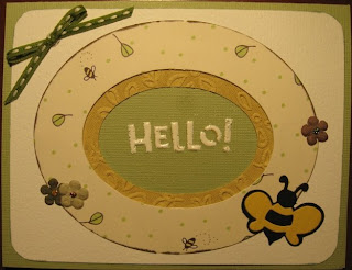 Then, I needed to cover the score mark from the outside. I decided to incorporate a stamping element on the card. And I love heat embossing. So, starting with the "happy" cards, I pulled out the Stampin Up "Happy Everything" stamp set (pg. 143 of the 2008 catalog). These are posted for sale on etsy.